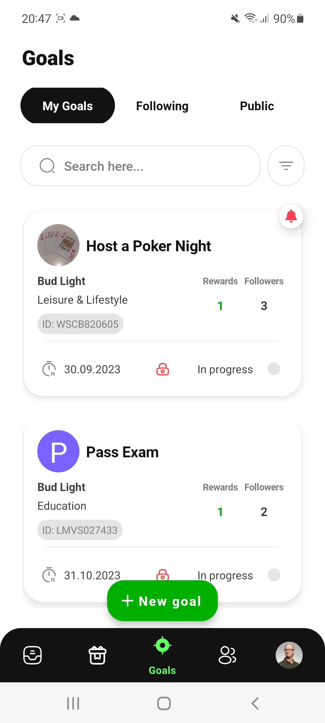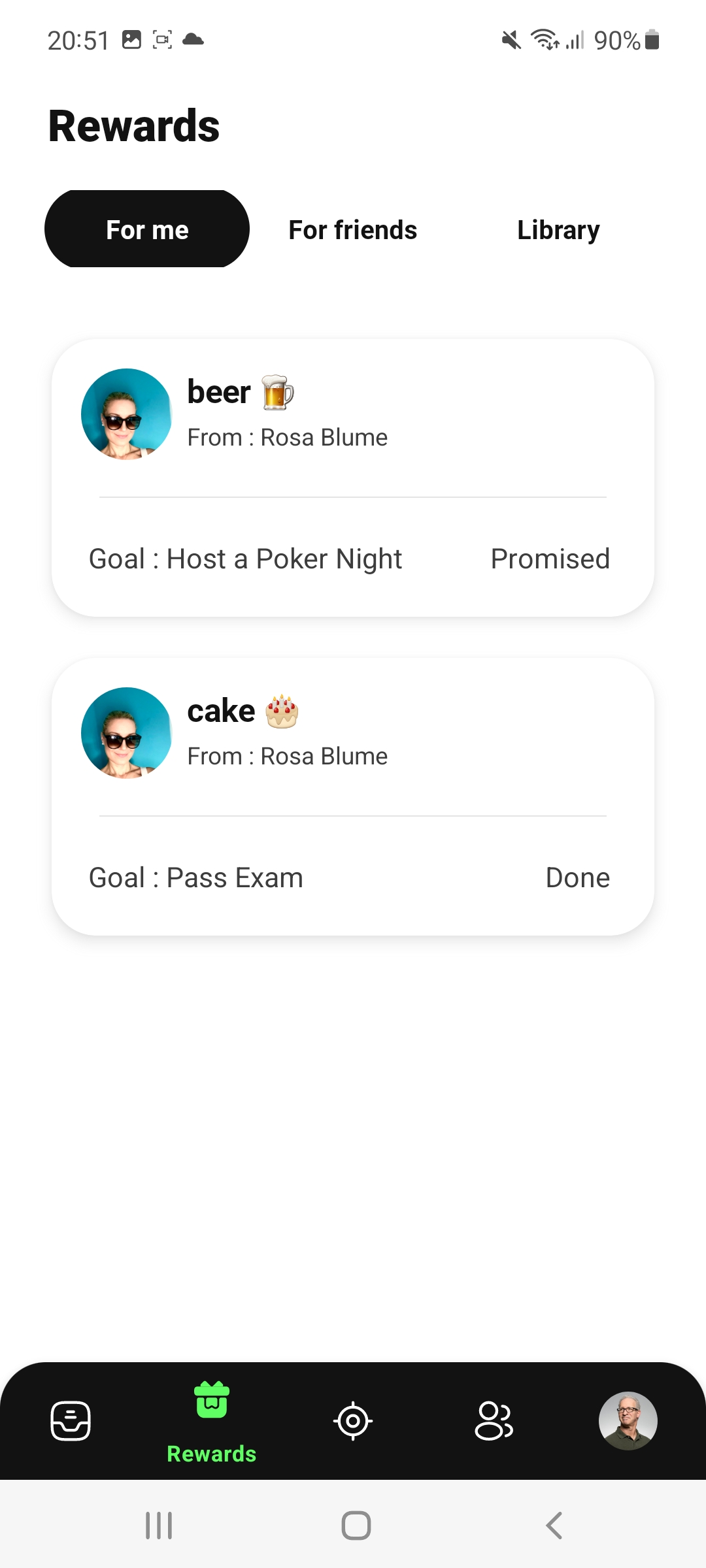 In the "Rewards" menu you can see for which of your goals rewards have been promised. You can also see which friends and goals you have promised rewards to.