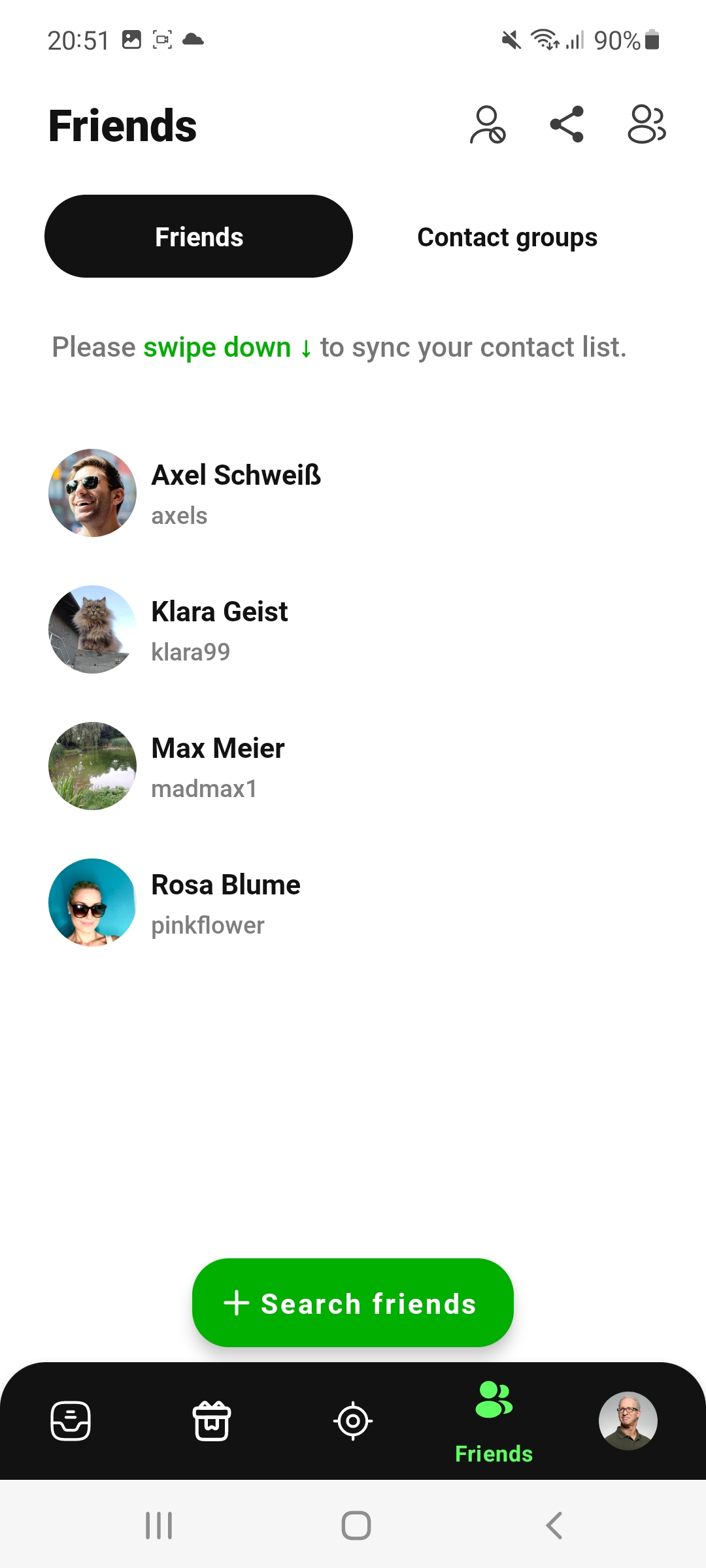 See which of your contacts are already on Goalship. Use the "Share" icon to send friends an invitation to Goalship. If needed, you can also organize your contacts into interest groups.